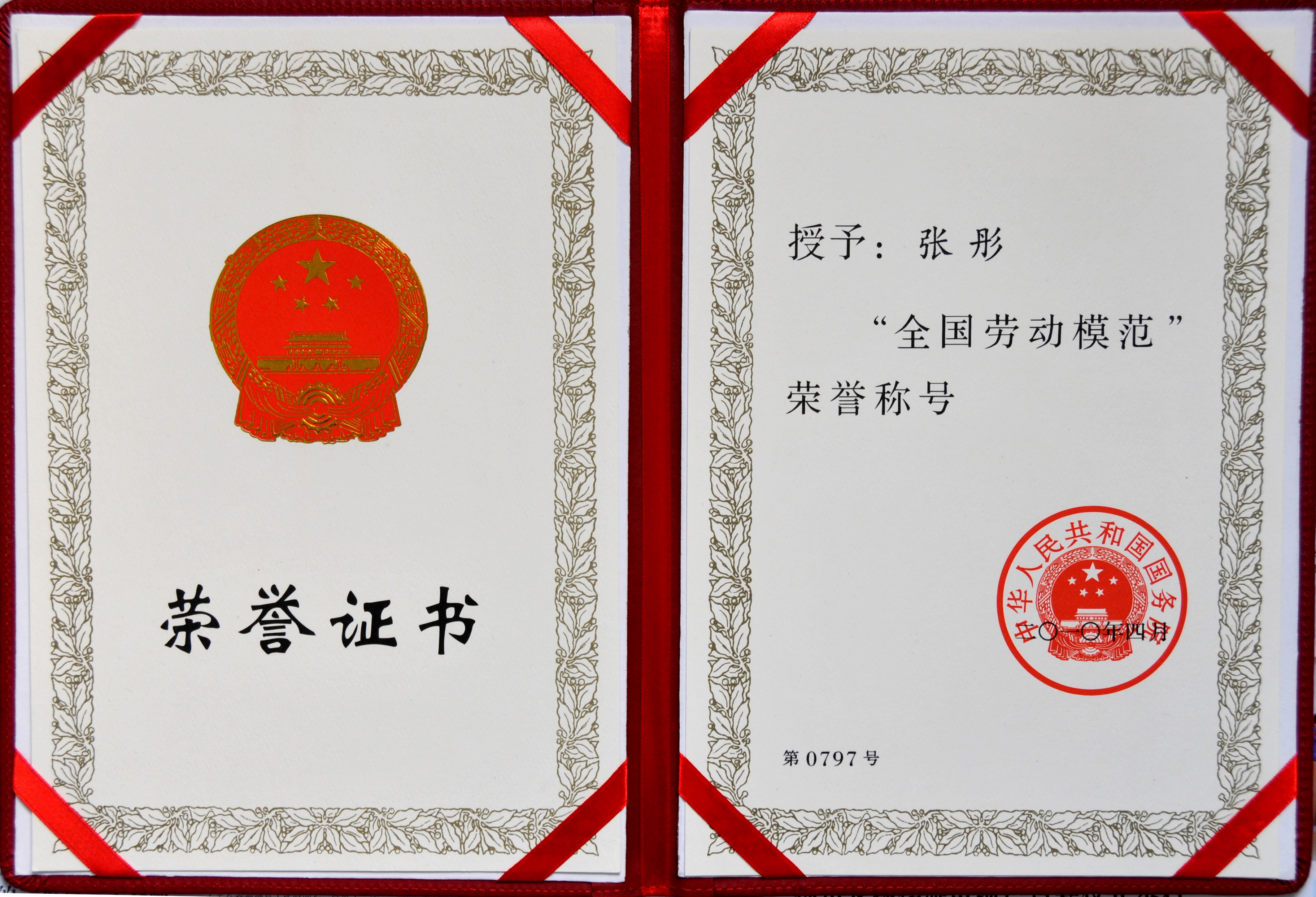 張彤榮獲全國勞動(dòng)模范稱號