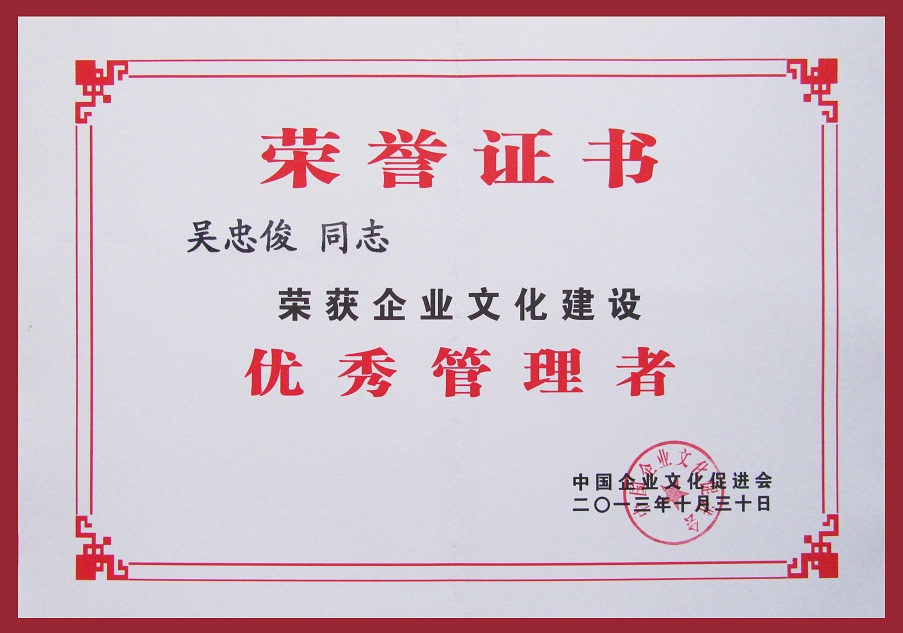 集團(tuán)公司被授予“企業(yè)文化建設(shè)百佳單位”榮譽(yù)稱號(hào);集團(tuán)公司總經(jīng)理、黨委書(shū)記吳忠俊被第四屆七次理事會(huì)選為中國(guó)企業(yè)文化促進(jìn)會(huì)副會(huì)長(zhǎng),并被評(píng)為“企業(yè)文化建設(shè)優(yōu)秀管理者”;集團(tuán)公司企業(yè)文化策劃處處長(zhǎng)俆世革被評(píng)為“企業(yè)文化建設(shè)先進(jìn)工作者”。我司在企業(yè)文化建設(shè)方面的成績(jī)得到了充分肯定。