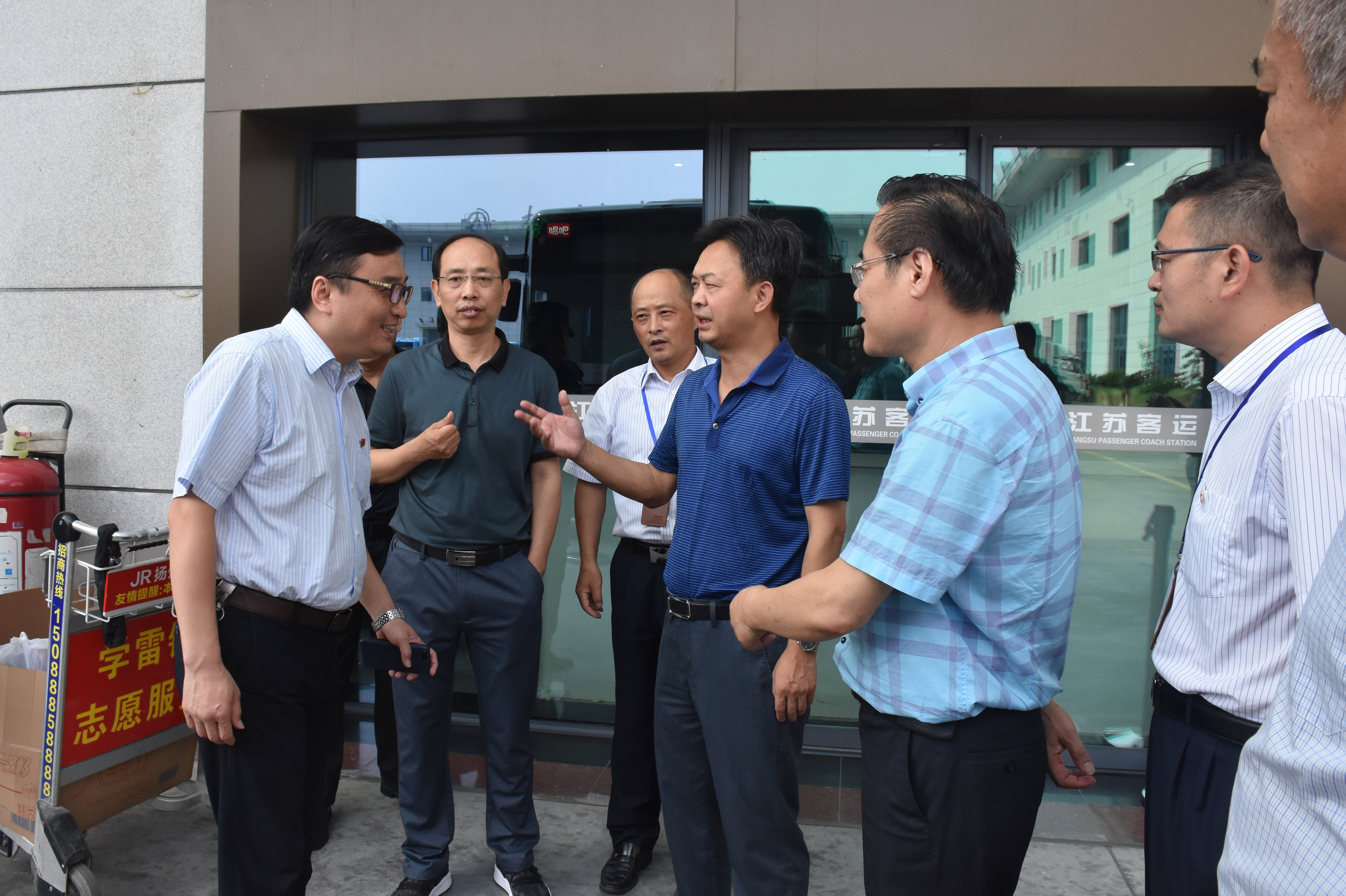 凌董事長一行對西部樞紐揚(yáng)州站的候車廳、安檢口、換乘中心等部位進(jìn)行巡視。發(fā)車場上,午后的驕陽下,一輛輛大客車整裝待發(fā),發(fā)動機(jī)艙里涌出陣陣熱浪,凌董事長逐一給駕駛員送上防暑降溫用品,并一再叮囑要注意夏季“三防”,確保行車安全。隨后,董事長一行來到西部樞紐公交場站進(jìn)行慰問。