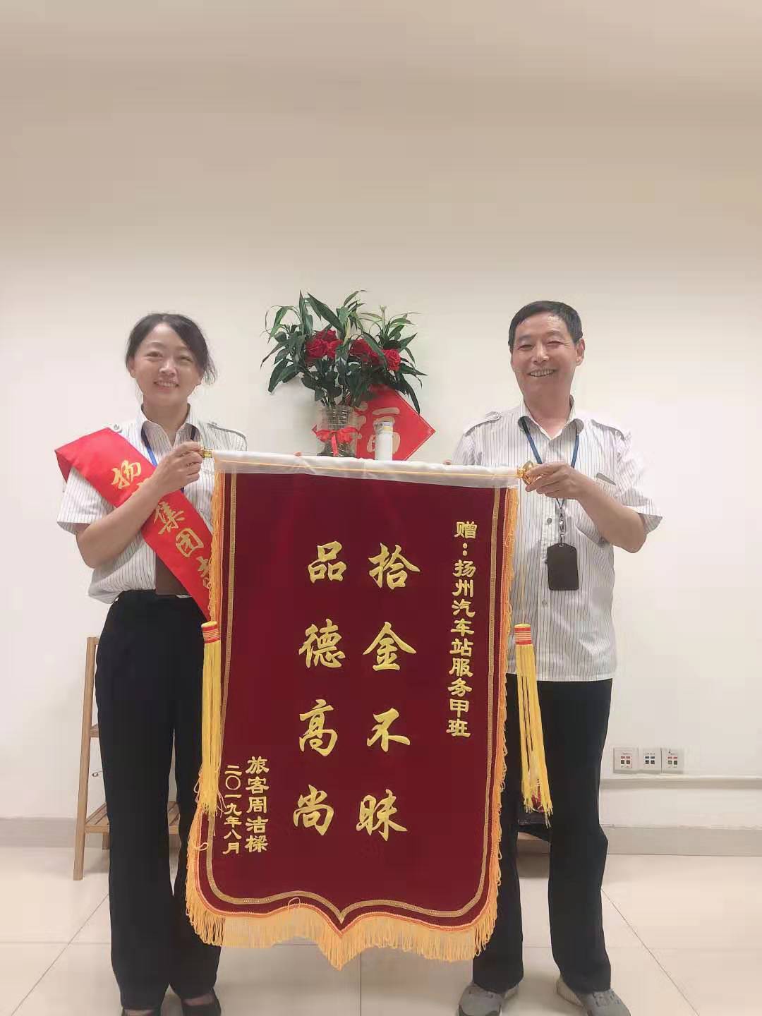 8月2號(hào),杭州的周女士和同伴乘坐大巴車來(lái)?yè)P(yáng)州游玩。不慎將裝有蘋果手機(jī)和錢包的手提袋遺忘在廁所的掛鉤上。后在揚(yáng)州汽車站服務(wù)班工作人員的幫助下,尋找到了失物。8月6日,已經(jīng)回到杭州的周女士特地郵寄來(lái)了錦旗,感謝揚(yáng)州汽車站服務(wù)班組工作人員。