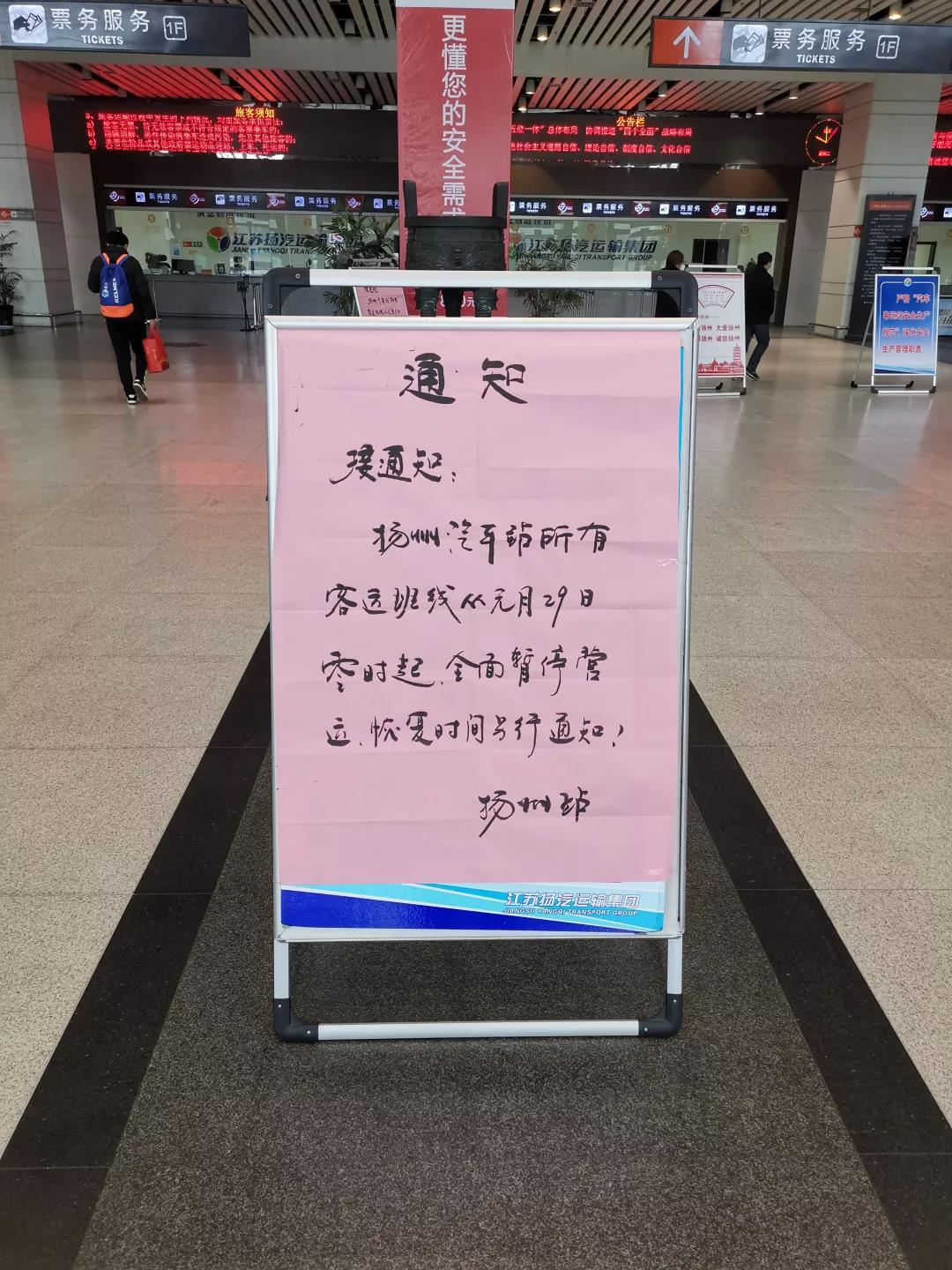 為進一步配合我市做好新型冠狀病毒感染的肺炎疫情防控工作,遏制疫情通過交通渠道擴散傳播,揚汽集團根據(jù)揚州疫情防控工作需要,決定從2020年1月29日0時起,暫停揚州汽車站、揚州汽車東站及江都汽車客運站的運營,停發(fā)所有客車班線,暫停所有包車客運業(yè)務(wù)。