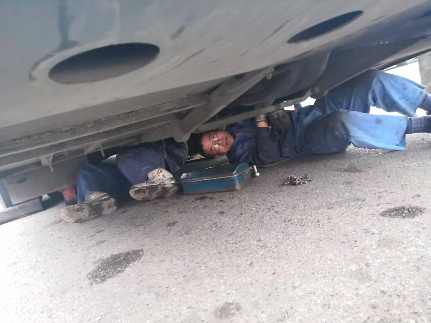 11月21日上午客服總調(diào)親自帶隊(duì),修理廠派出維修精英4人,于11:30抵達(dá)。此時(shí)天空不作美,寒風(fēng)刺骨摻和冰冷雨水,搶修環(huán)境更為惡劣,為盡快恢復(fù)班次,師傅們顧不上吃飯,便開始搶修工作,從變速箱附件拆卸、安裝,變速箱落地、吊裝,分離軸承更換、潤(rùn)滑,每個(gè)步驟環(huán)節(jié)都井然有序,連續(xù)作業(yè)3小時(shí)后,于下午14:30搶修成功。此時(shí),師傅們才放心的吃了飯,穿著濕透的工作服返回?fù)P州。他們?cè)谄椒驳墓ぷ鲘徫簧,用辛勤的汗水,展現(xiàn)了揚(yáng)汽人默默奉獻(xiàn)的精神。
