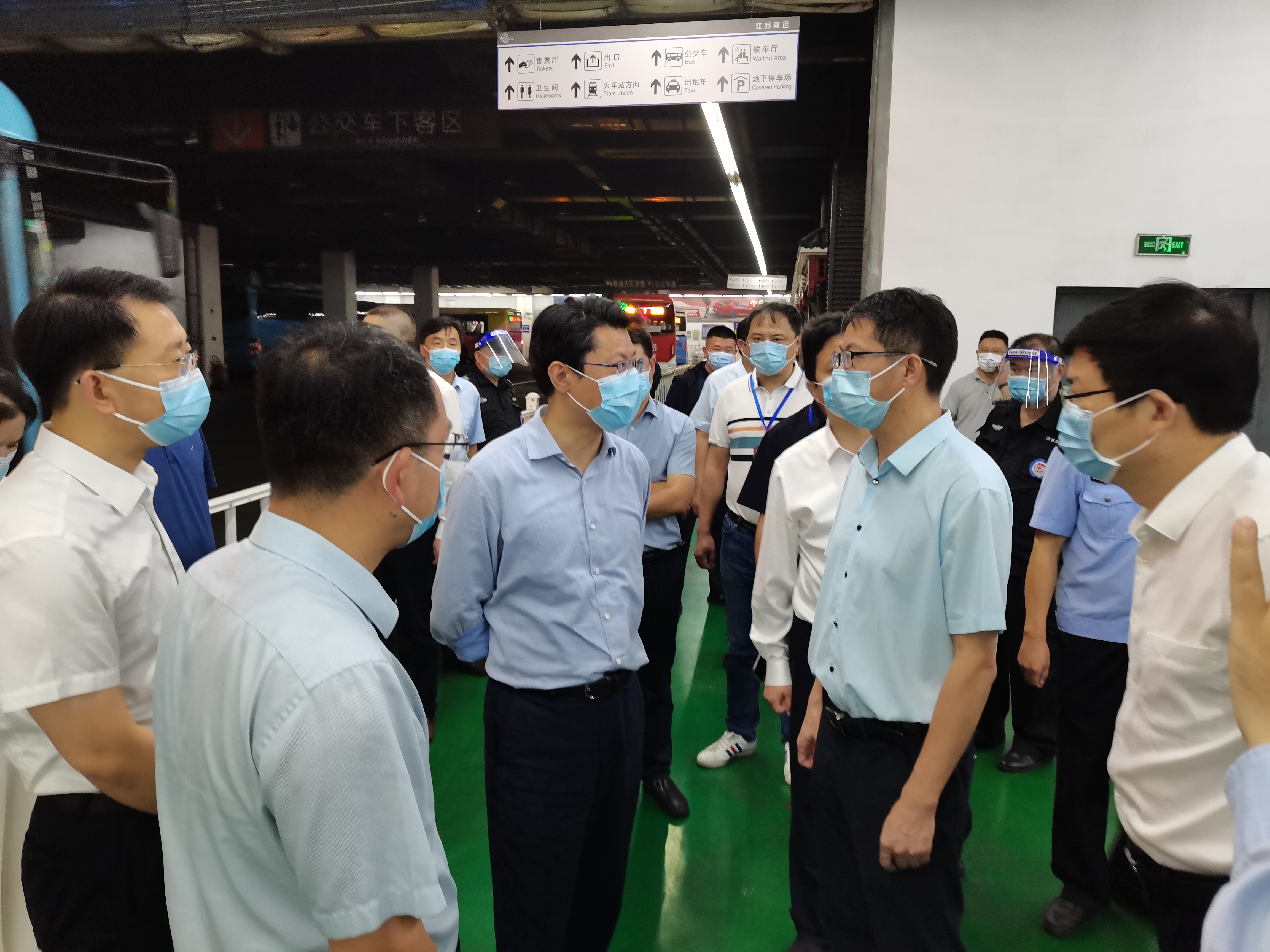 國慶假期第一天,市長(zhǎng)王進(jìn)健帶隊(duì)赴西部客運(yùn)樞紐檢查節(jié)日期間疫情防控工作。交通產(chǎn)業(yè)集團(tuán)黨委書記、董事長(zhǎng)方璇智,交通產(chǎn)業(yè)集團(tuán)副總經(jīng)理、揚(yáng)汽集團(tuán)黨委書記、董事長(zhǎng)龔宇峰,揚(yáng)汽集團(tuán)副總經(jīng)理徐建波、趙磊及相關(guān)部門負(fù)責(zé)人陪同檢查。