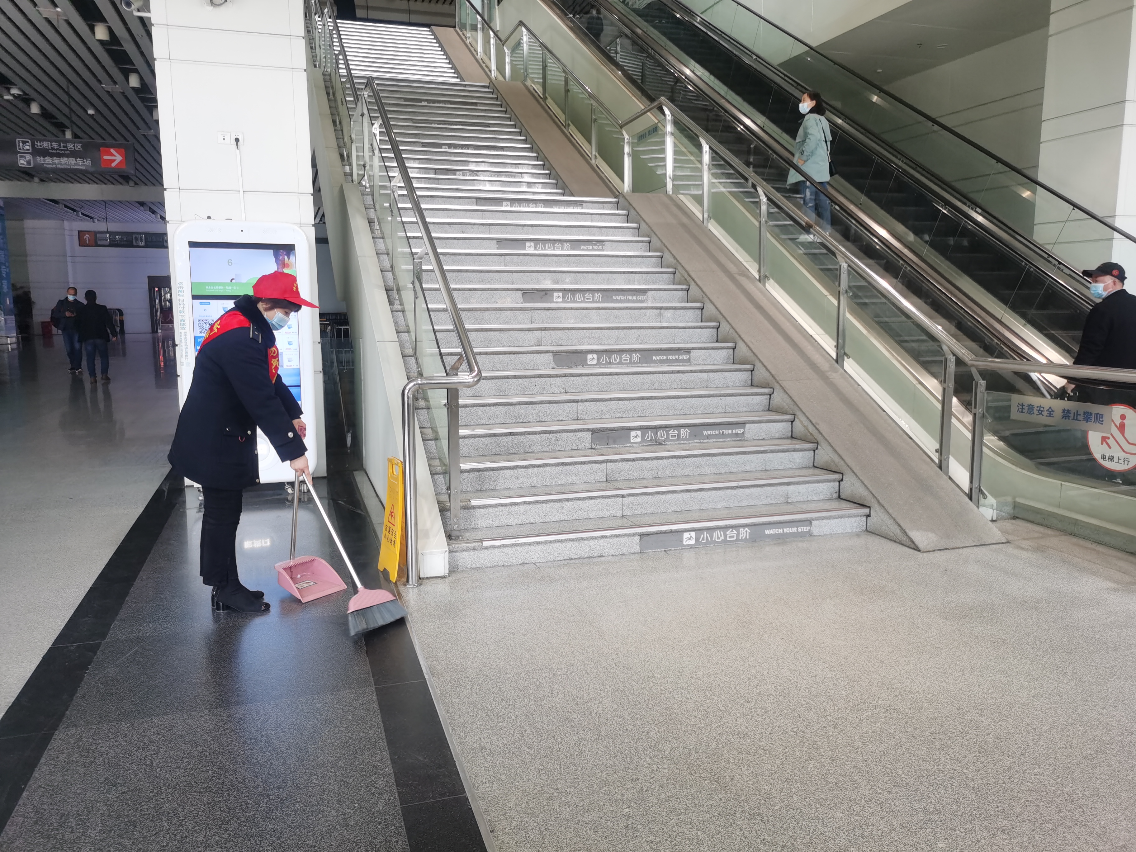 車站作為城市窗口單位之一,為保證乘車環(huán)境的衛(wèi)生,車站內(nèi)實(shí)行動(dòng)態(tài)清掃制度,保持地面干凈整潔,利用櫥窗展板、易拉寶等多種形式廣泛傳播社會主義核心價(jià)值觀,把“講文明樹新風(fēng)”“八禮四儀”“垃圾不落地 揚(yáng)州更美麗”等主題融入車站空間,更好地維護(hù)站區(qū)秩序,有序引導(dǎo)旅客進(jìn)出站。