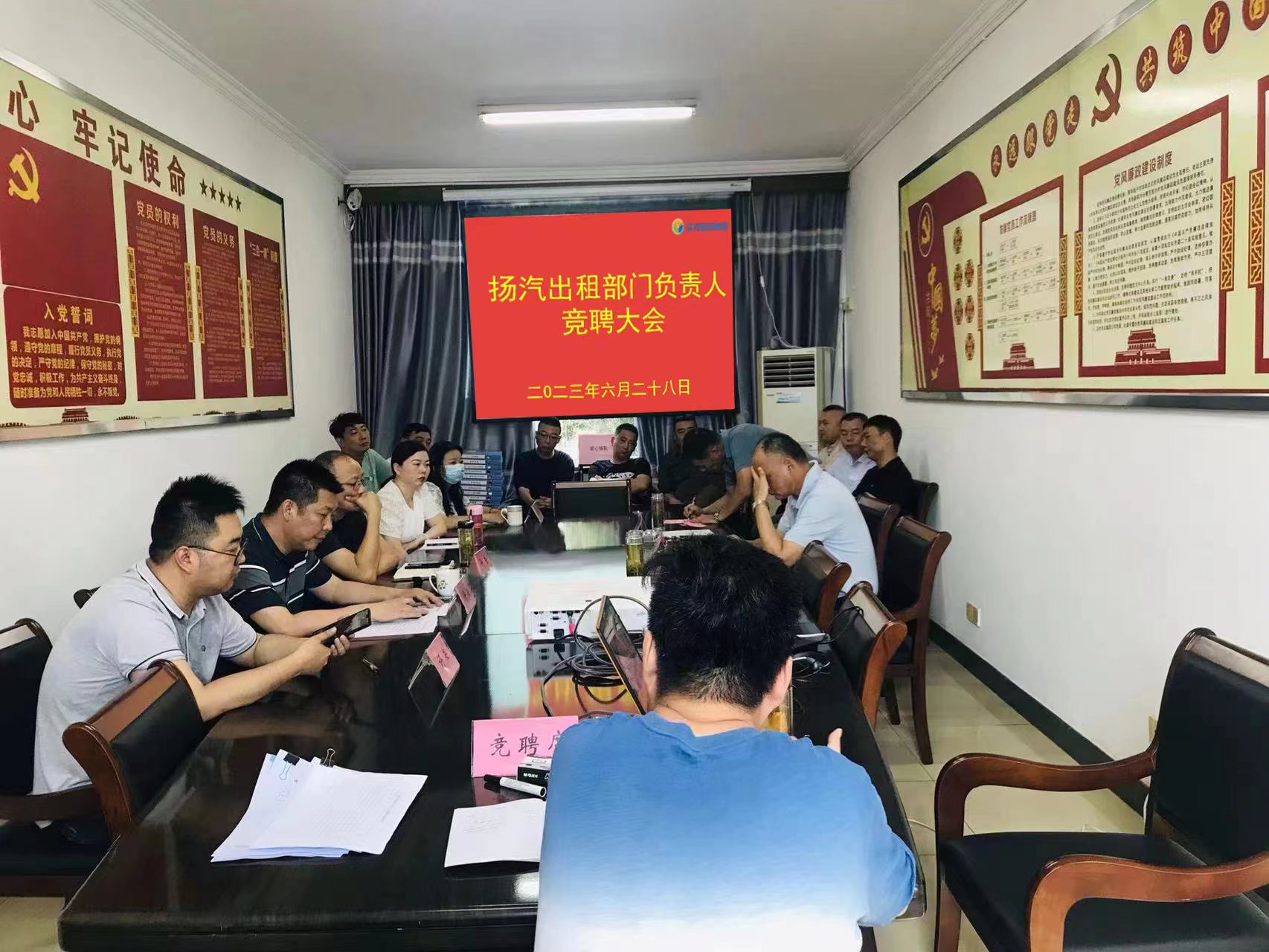 為進(jìn)一步發(fā)揮黨建引領(lǐng)作用,推動(dòng)企業(yè)高質(zhì)量發(fā)展,加大選拔培養(yǎng)管理人才隊(duì)伍建設(shè)力度,6月28日上午,揚(yáng)汽出租組織開(kāi)展部門負(fù)責(zé)人競(jìng)聘會(huì),揚(yáng)汽集團(tuán)副總經(jīng)理徐建波、黨群工作部、人力資源部、安全機(jī)務(wù)部、經(jīng)營(yíng)發(fā)展部及揚(yáng)汽出租相關(guān)負(fù)責(zé)人參加會(huì)議。