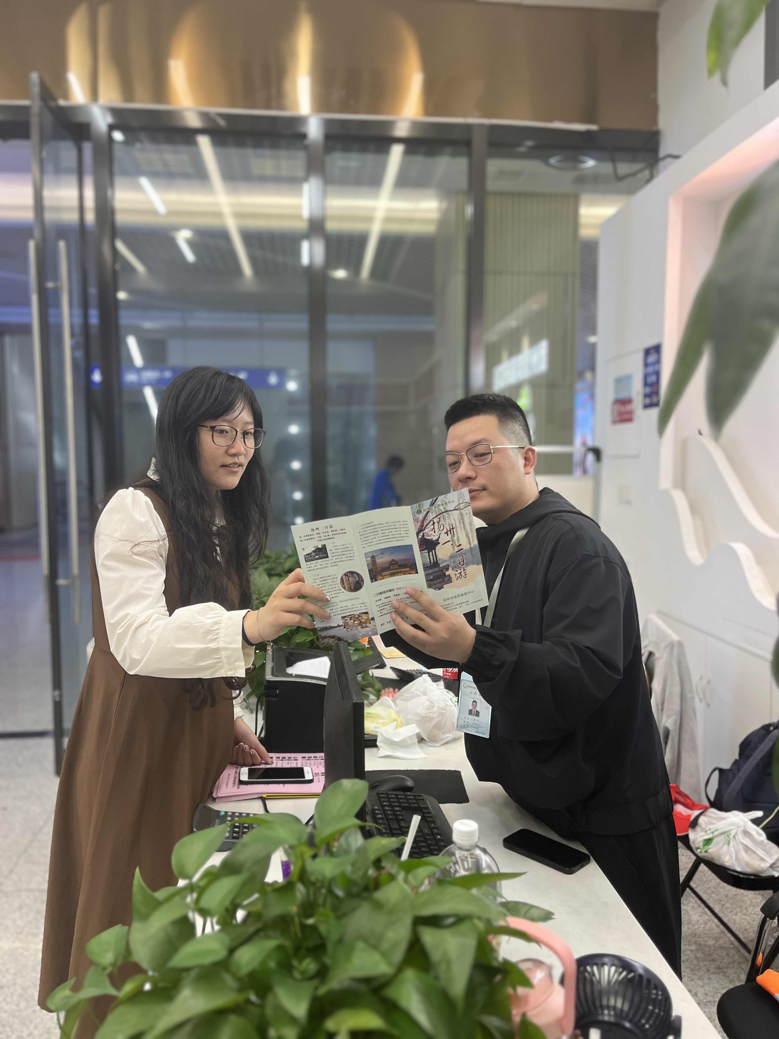 唐正求、王文玉等三人從重慶來到揚州旅游,一下高鐵,便受到集散中心門市工作人員的熱情接待,接待人員耐心地為他們推薦揚州美景、美食等,詳細介紹各個景區(qū)宣傳圖冊。工作人員一邊表達著揚州城對他們的歡迎,一邊遞上熱水請他們就座,把旅游相關的各類注意事項都一一做了講解。他們在結束揚州的旅游行程后,專程來到高鐵站門市致謝,但是由于把投訴記錄本錯當成了游客意見表,便出現(xiàn)了這樣一封特殊的“致謝信”。