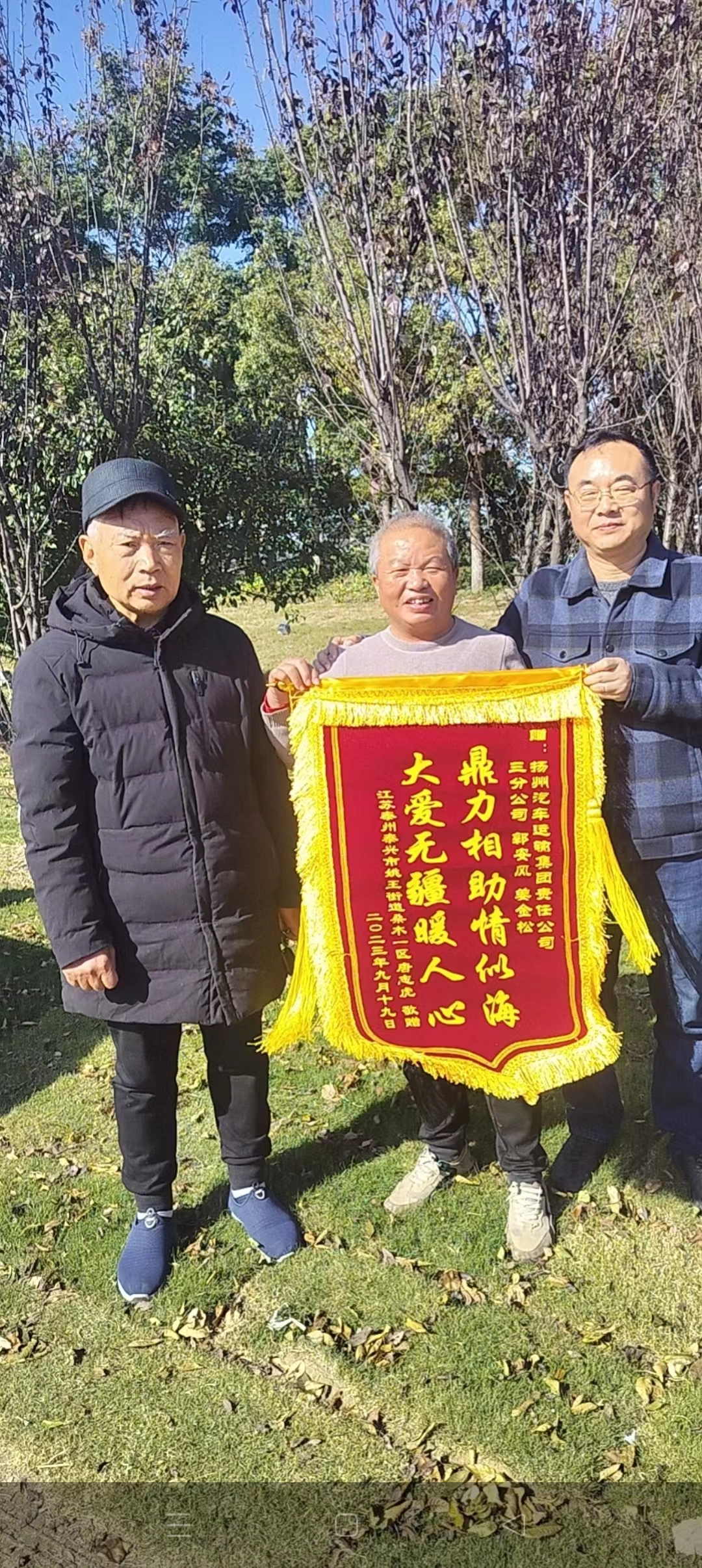 “要不是郭師傅和姜師傅及時(shí)伸出援手,后果不堪設(shè)想。”11月19日,江蘇泰興的一位唐老先生將一面印有“鼎力相助情似海 大愛無疆暖人心”的錦旗送到了揚(yáng)汽集團(tuán),將這面承載著感激之情的錦旗贈送到駕駛員郭安鳳和姜金松手中,感謝他們在危急時(shí)刻對自己的幫助。