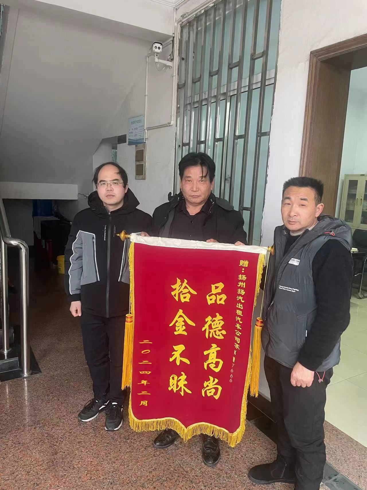 2月21日,揚汽出租蘇KW7666出租車駕駛員楊文標師傅拾金不昧,收到了乘客送來的錦旗,并向他表示感謝。
