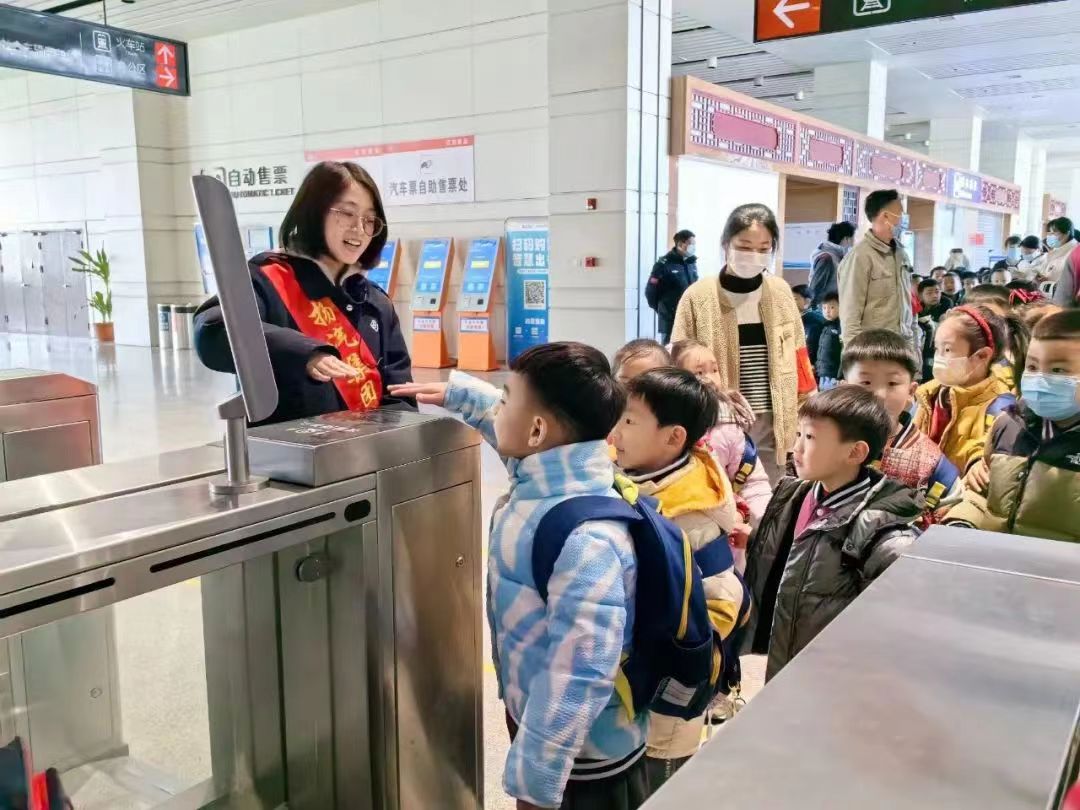活動當天,車站工作人員帶領小朋友們參觀了售票窗口、候車區(qū)、檢票口等區(qū)域,用講故事的方式向小朋友們介紹購買車票的方法,萌娃們對自助購票機感到非常好奇,他們在車站工作人員的引導下嘗試自己“購買車票”,讓孩子們真實體驗到整個乘車的流程。同時,工作人員還向小朋友們介紹了如何正確通過檢票閘機、行車中的安全事項等安全知識,小朋友們聽得津津有味,積極參與互動。